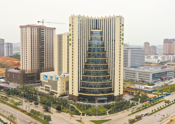 5月22日,廣西物資大廈落成啟用(如圖)。該工程由中國一冶集團廣西公司承建,位於南寧市龍崗大道東側,項目為新建兩棟框架結構辦公樓。其中,1棟為26層辦公樓,1棟為19層公寓式辦公樓,總建築麵積為112150平方米。 (記者陳明 通訊員毛榕寧 攝)