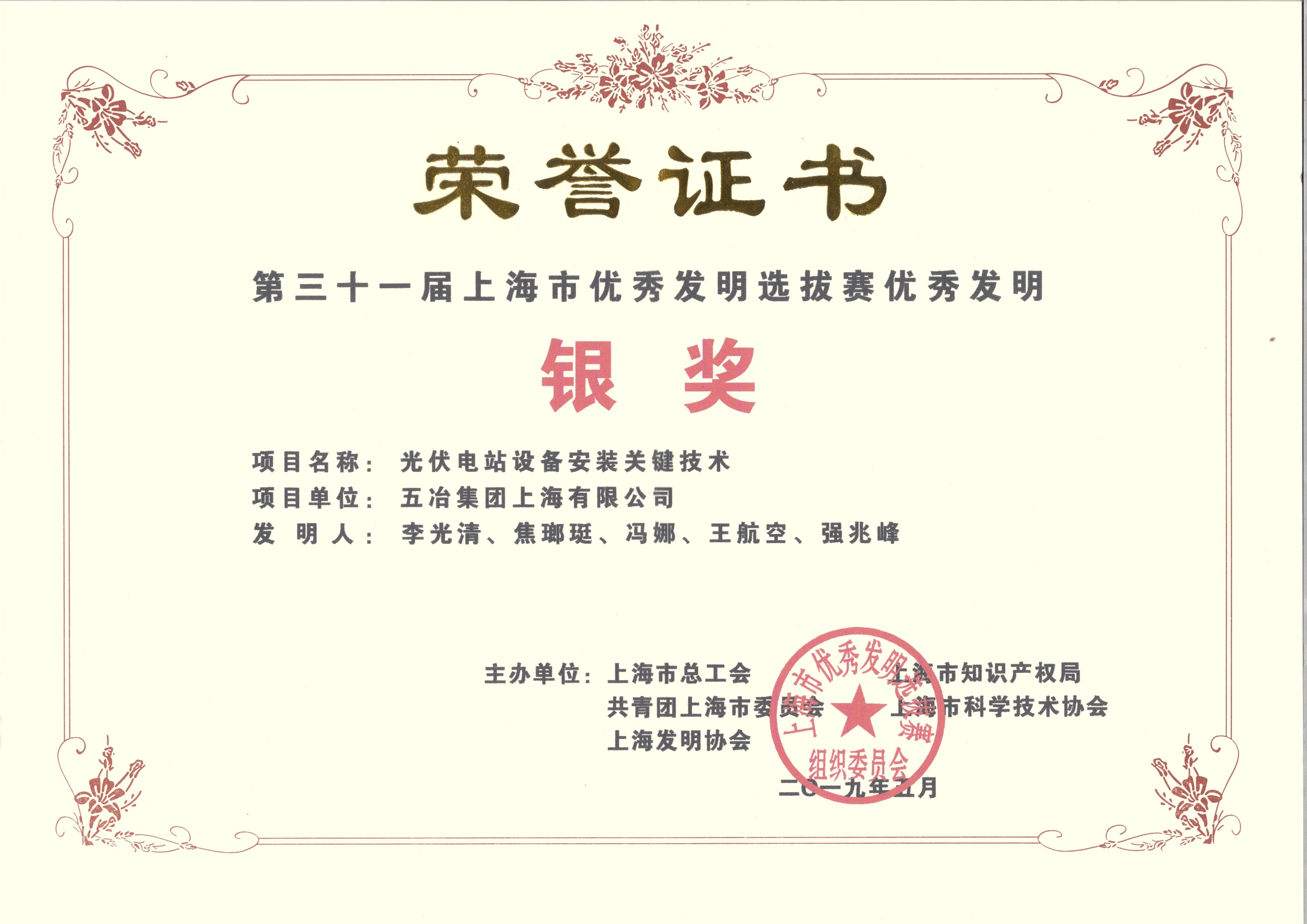 中國五冶集團工程總承包公司2個發明項目榮獲上海市優秀發明選拔賽銀獎