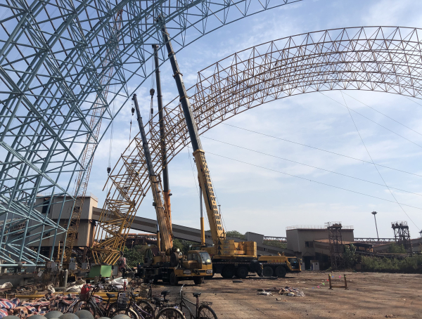 寶鋼三期礦石料場OL、OM料條B型封閉改造項目正式開始胎架拆除作業