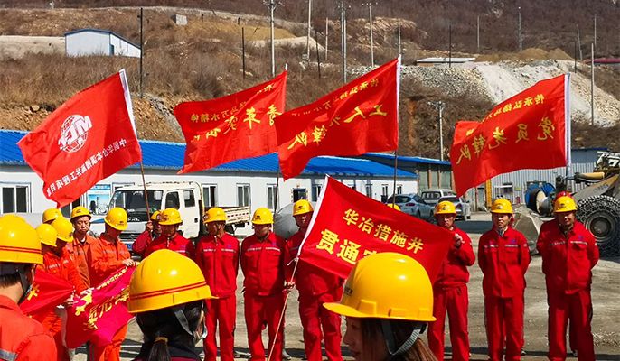 “奮戰四個月,貫通0號穿!”,激昂有力的誓言響徹中國華冶本溪思山嶺鐵礦項目現場。4月1日,中國華冶為順利完成龍新礦業“兩掘兩產”的目標要求,鼓舞人心,乘勢而上,舉行了“副井-措施井0號穿”貫通工程誓師大會。
