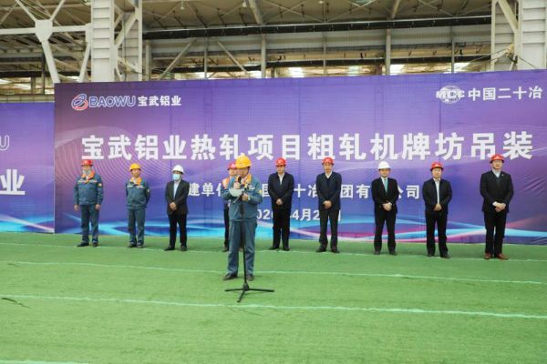 4月24日,中國二十冶集團寶武鋁業科技有限公司熱軋項目粗軋機牌坊成功吊裝。