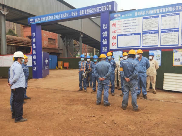 6月1日,中冶寶鋼承接的梅鋼原料碼頭智慧環保料場示範項目轉運站、通廊、電纜橋架封閉工程開工,施工方聯同業主與監理方,結合安全生產月主題教育作了聯合交底,啟動料場封閉施工。
