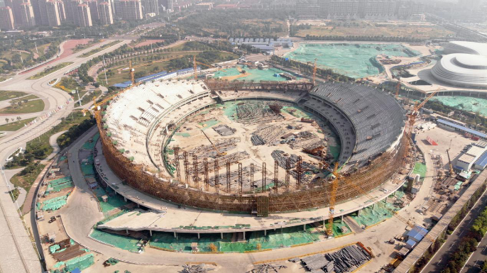 上海寶冶唐山新體育中心體育場工程主體結構封頂