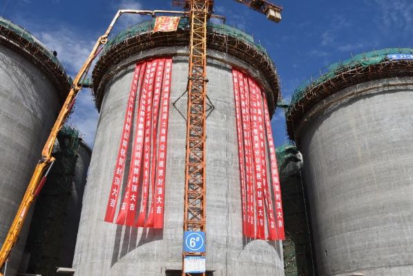 中國二冶蘭州糧食現代產業園項目淺圓倉喜封金頂