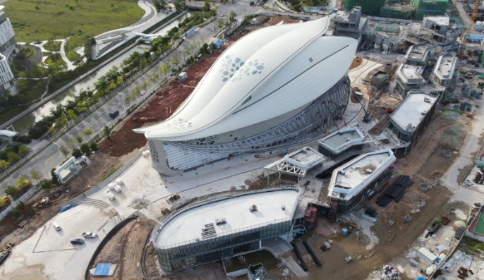 該項目位於珠海市橫琴島西部臨海區域,西鄰厚樸道,北鄰勝洲一路。總建築麵積35946.39平方米,地上建築麵積14321.47平方米,地下建築麵積21624.92 平方米。項目整體造型近似青龍偃月刀狀,地上建築分為10棟單體,使用功能為商業,人防地下室為二層,局部一層,平時作為汽車庫和人防展廳,戰時作為人員掩蔽所、物資庫及裝備部。
