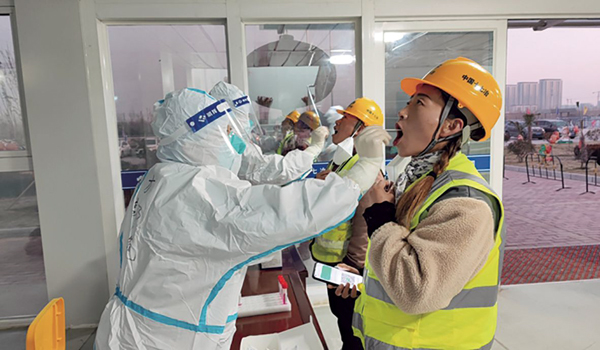 圖為中國十七冶員工正在進行核酸檢測。