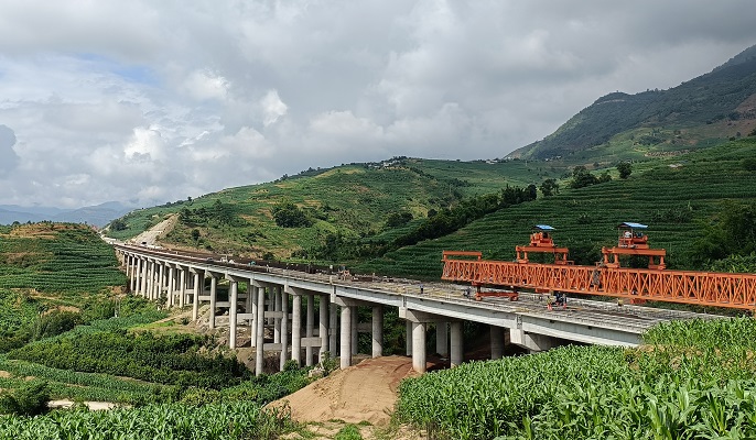7月2日,中國十九冶承建的永猛高速公路項目新街壩1號大橋T梁架設順利完成。