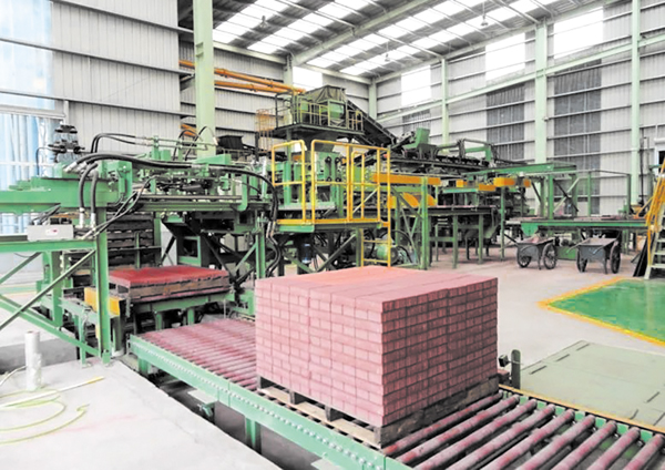 圖為鋼渣透水製品生產線。