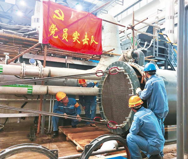 黨建引領,彰顯責任擔當。兩年以來,中冶寶鋼“黨員突擊隊”設備維保團隊始終以高度的責任心、規範的現場管理、過硬的技術麵對每次檢修任務。其中,提前3天完成航空煤油臥式儲油罐清洗任務、排除6004變電總站22萬伏電網突發跳電故障、國慶期間完成2007循環水入口伸縮節檢修、高質量完成6003水循環係統年度維護保養、發揮技術優勢完成6002抽氣站房阿特拉斯空氣壓縮機組大修……一係列設備維保任務,保障了臨港基地設備正常運行,為國產大飛機發動機研製做出了中冶寶鋼貢獻。
