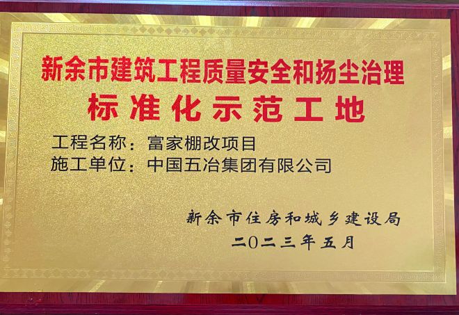 中國五冶新餘富家棚改項目榮獲“新餘市建築工程安全和揚塵治理標準化示範工地”稱號