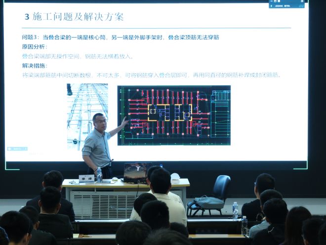 內外講師同授課,“對症下藥”促提升。為踐行“品質保障,價值創造”核心價值觀,公司在此次培訓中,特聘請外部專家李峰博士圍繞“PC施工質量管控”進行了專題授課。課上,李峰博士分享了自己從業以來的PC管理經驗,並精心挑選項目質量管控過程中容易發生的“外牆標高及軸線定位偏差較大”、“邊緣構件作業空間不足”、“預製柱鋼筋與鋼定位板位置不一致”、“預製樓板厚度過厚”等14個問題與參訓人員展開討論交流,幫助大家進一步找準質量工作的痛點難點,提前製定好問題解決方案,確保精品工程創優創效。