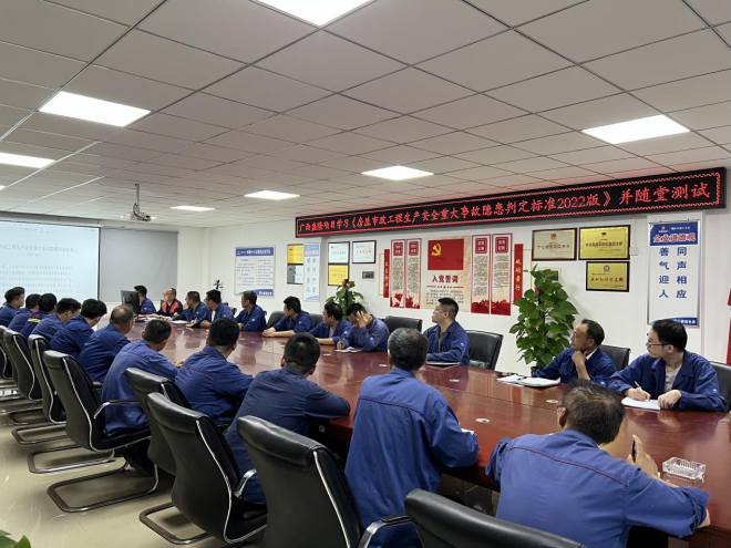 為深入貫徹落實習近平總書記關於安全生產工作的係列重要批示指示精神,紮實開展中國十七冶“安全管理強化年”、“安全生產月”等活動,6月6日,十七冶防城盛隆煉鋼項目組織所有管理人員參加《房屋市政工程生產安全重大事故隱患判定標準(2022版)》專題培訓學習會。