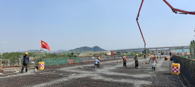 中國五冶濟濰高速公路項目三標段昆侖樞紐跨線橋現澆箱梁混凝土澆築順利完成