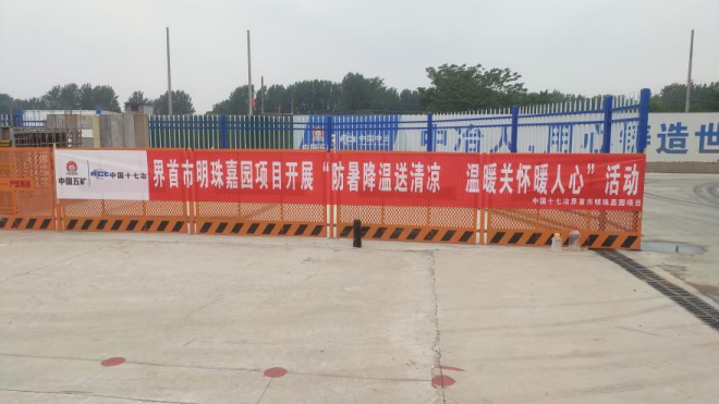 為持續推進“安全生產月”方案的實施,6月16日,中國十七冶界首市明珠嘉園項目組織開展了“防暑降溫送清涼”活動及“安全生產月宣傳谘詢”活動