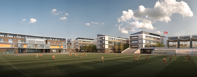項目位於天津市靜海區團泊新城東區贛江東一路西側、秀水路北側,建築麵積約為5.4萬平方米,主要建設內容包括新建教學樓、學生宿舍、圖書館、體育場館、食堂、禮堂、各功能教室等。項目建成後將與小學部形成涵蓋小學、初中、高中十二年製的公辦學校,對於進一步完善團泊新城教育資源,提升當地教學質量,促進團泊新城區域發展有著重要意義。(王逸辰)