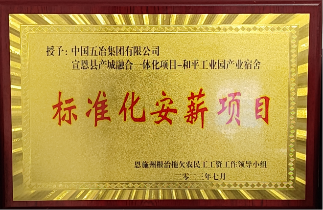 近jin日ri,在zai恩en施shi州zhou標biao準zhun化hua安an薪xin項xiang目mu暨ji一yi站zhan式shi勞lao動dong保bao障zhang維wei權quan中zhong心xin先xian行xing區qu創chuang建jian工gong作zuo現xian場chang推tui進jin會hui上shang,由you中zhong國guo五wu冶ye集ji團tuan承cheng建jian的de湖hu北bei省sheng宣xuan恩en縣xian產chan城cheng融rong合he一yi體ti化hua項xiang目mu——和平工業園產業宿舍獲評恩施州第一批“標準化安薪項目”榮譽,並代表全州、各縣510個在建項目作了以《對標對表抓創建 規範管理促安薪》為題的發言,已被政府收錄相關文件集。