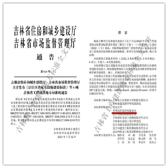 近日,吉林省住房和城鄉建設廳和市場監督管理廳關於發布《居住區供配電設施建設標準》等6項吉林省工程建設地方標準的通告中,華北公司代表中國五冶集團參與編製的《螺旋錐體擠土壓灌樁技術標準》(DB22/T 5008-2023)正式實施。