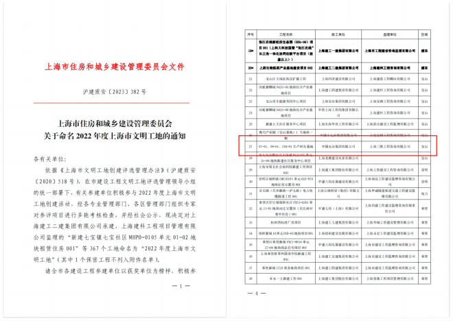 近日,由中國五冶集團承建的寶山南大97-01生產研發基地工程項目榮獲2022年度“上海市文明工地”稱號,這是繼項目獲得上海市建設工程金屬結構“金鋼獎”後,再次斬獲市級工程建設榮譽,展現了五冶人匠心建造、精益求精的不懈追求,彰顯了五冶強大綜合實力與優質品牌形象。