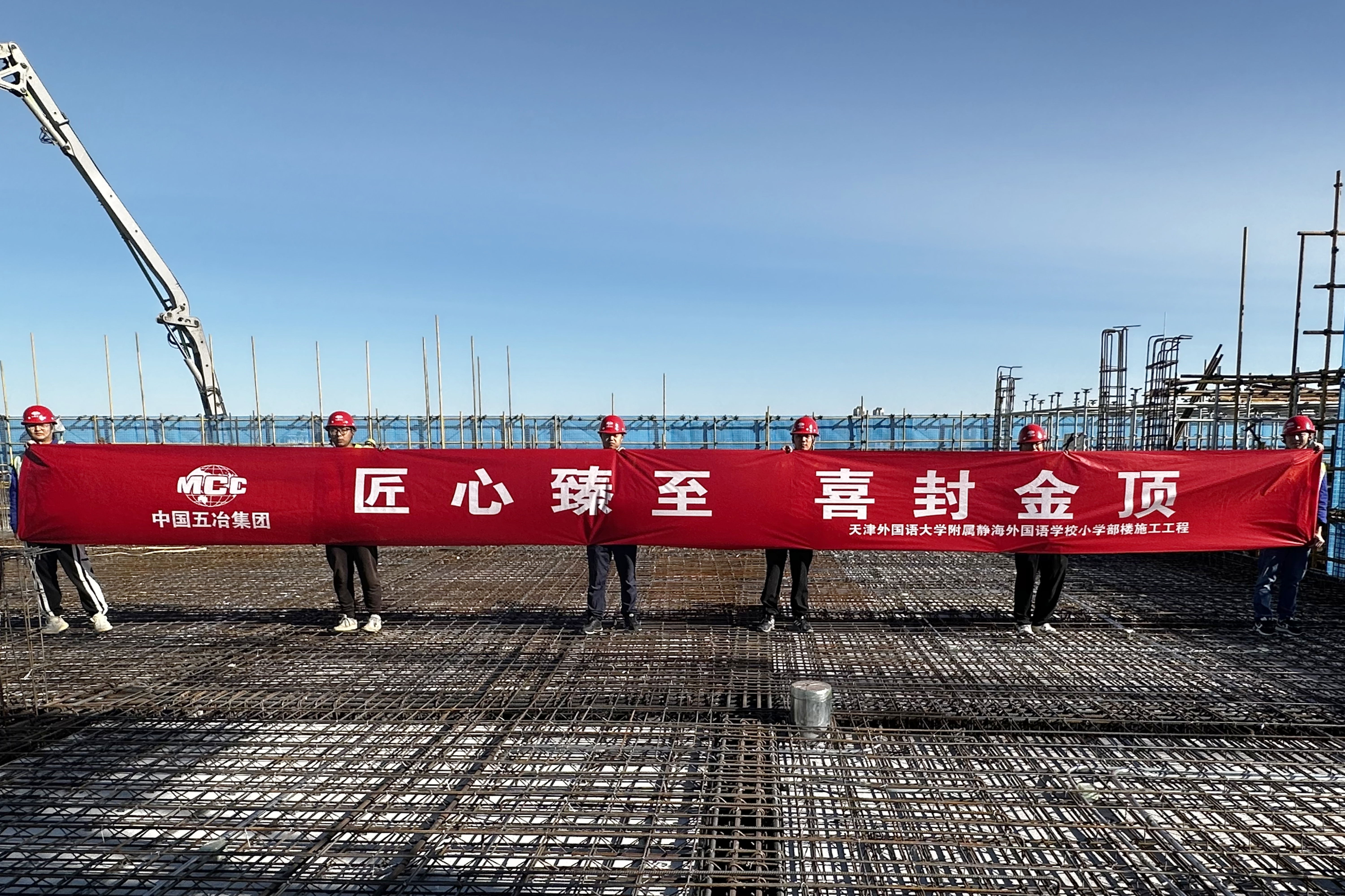 近日,中國五冶集團承建的天津外國語大學附屬靜海外國語學校項目小學部順利封頂。