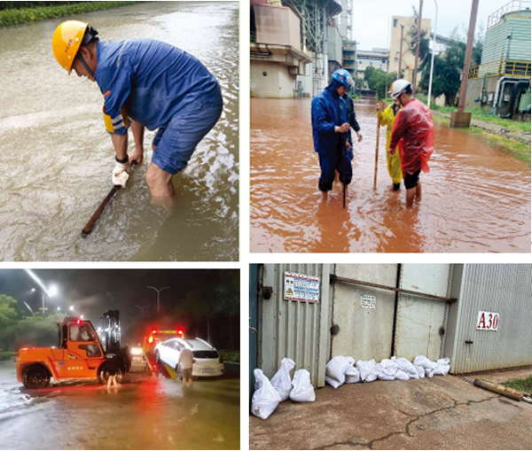 全力以赴,確保現場安全。中冶寶鋼認真細致排查湛江鋼鐵廠區內薄弱環節,嚴格落實24小時值班帶班製度,守好電氣室、液壓站、電纜隧道、地下室等防汛重點部位,壓實值班人員責任;利用沙袋提前做好重點區域防護,疏通區域內排水管道,確保排水暢通;迅速解決因積水導致的設備損壞問題,運用抽水泵等工具排空積水、快速清淤、組織搶修,確保設備安全穩定。