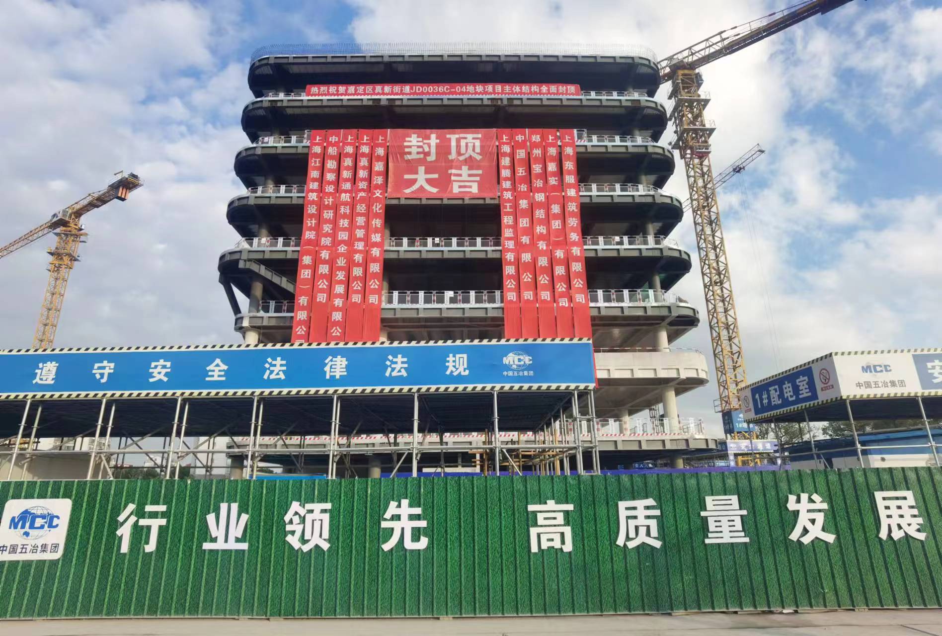 中國五冶集團上海嘉定真新街道JD0036C-04地塊科研樓項目成功封頂