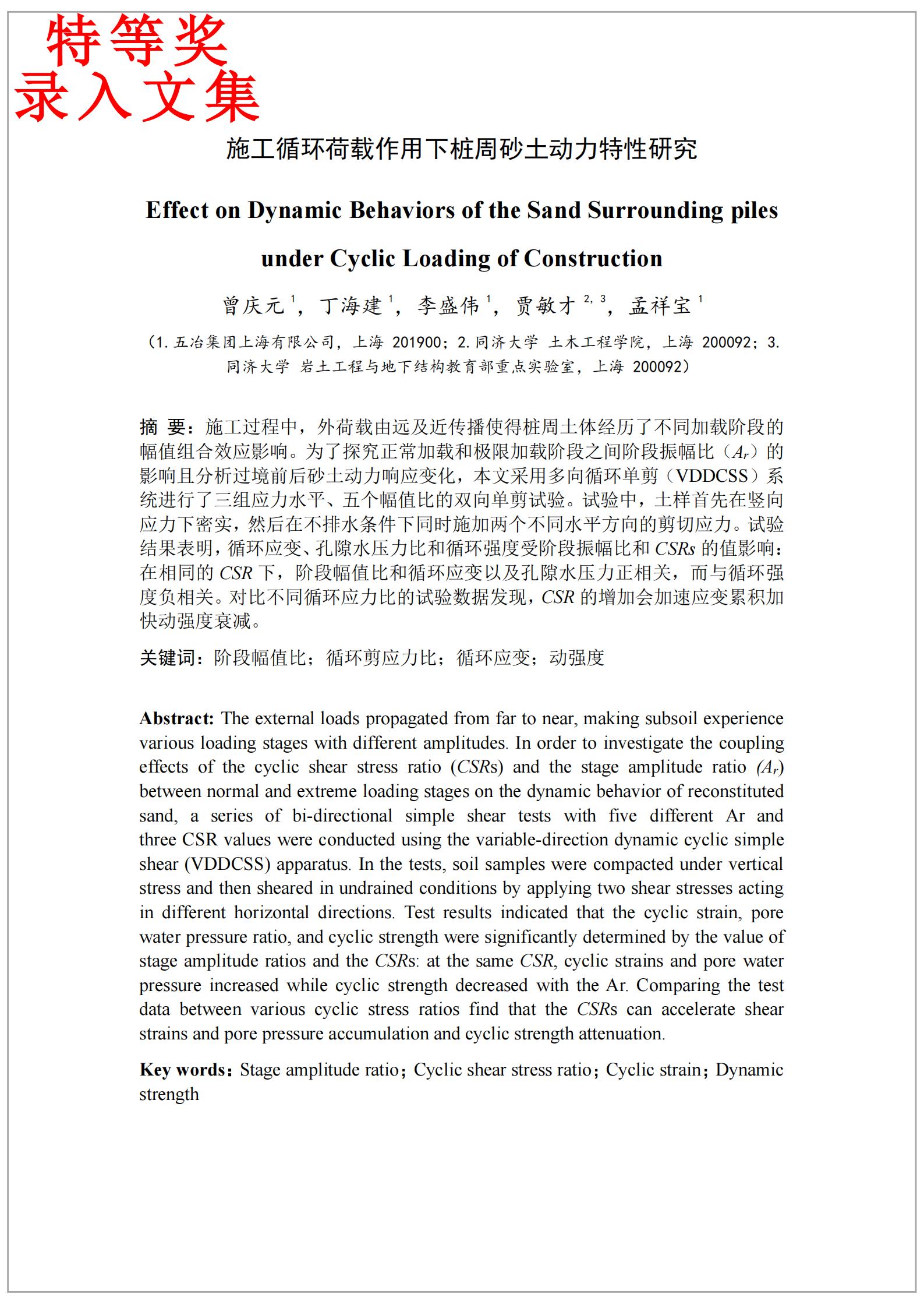 五冶上海交通市政公司作為中國五冶集團的優秀代表,在本次競賽中一舉摘得11項大獎,涵蓋工程科技論文、岩土專題論文、綠色工法、發明專利、微創新成果五大領域,其中:《施工循環荷載作用下樁周砂土動力特性研究》、《ICE高頻免共振樁施工環境擾動效應研究》、《淺埋地鐵長距離共線段路基換填施工技術研究》3項成果榮獲特等獎,《淺埋地鐵長距離共線段新建道路路基荷載平衡法換填施工工法》榮獲一等獎,另外獲得二等獎5項、三等獎2項,獲獎數量與質量均創曆史新高,充分彰顯了公司在科技創新領域的努力與成就。