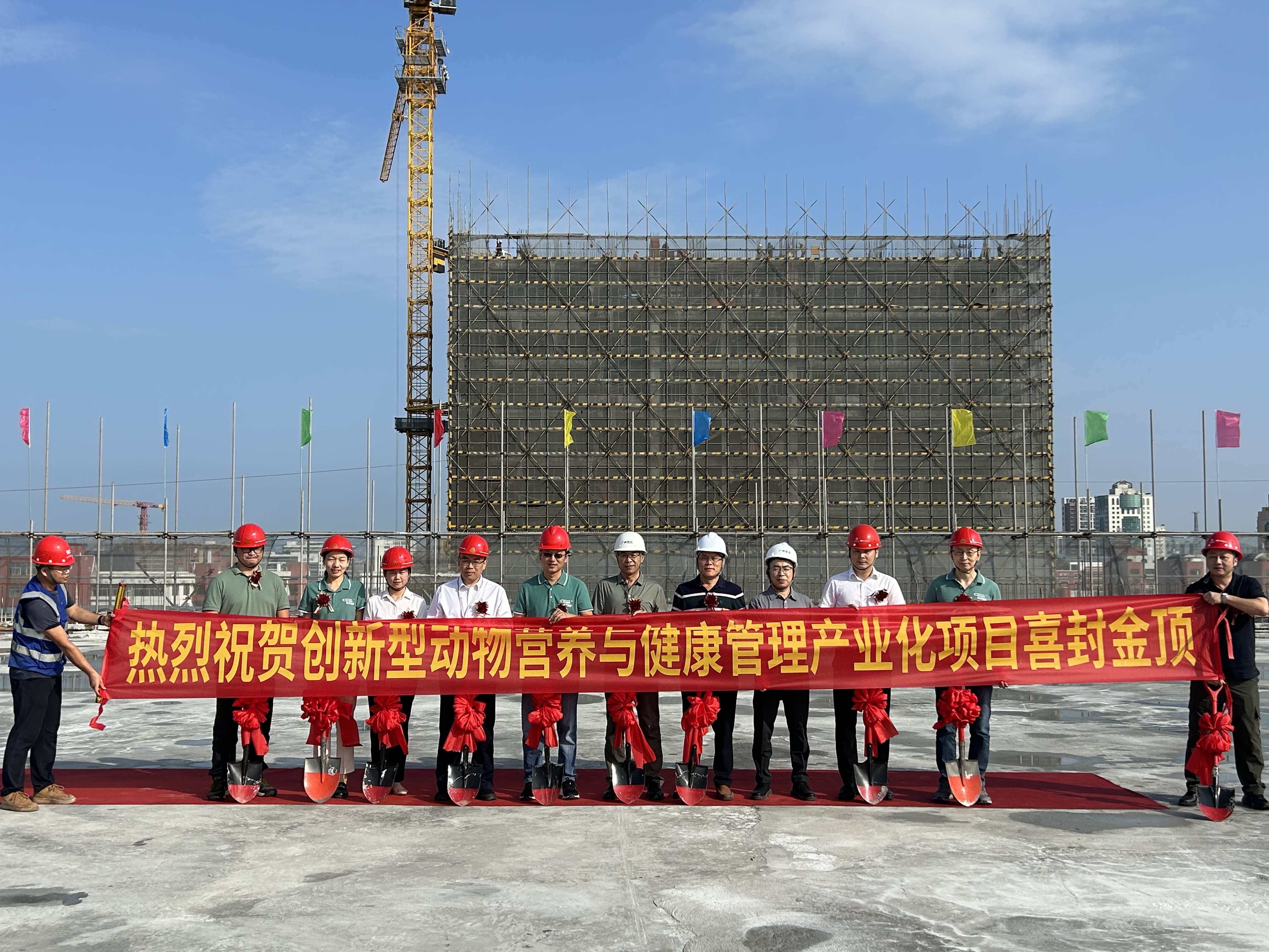 11月18日,隨著業主方、施工方、監理方領導代表共同完成項目廠房最後一方混凝土的澆築,由中國五冶集團承建的創新型動物營養與健康管理產業化項目(以下簡稱“藍色糧倉項目”)主體結構實現全麵封頂,為該項目按期交付奠定了堅實基礎。