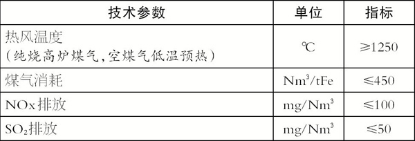 典型頂燃式熱風爐技術指標: