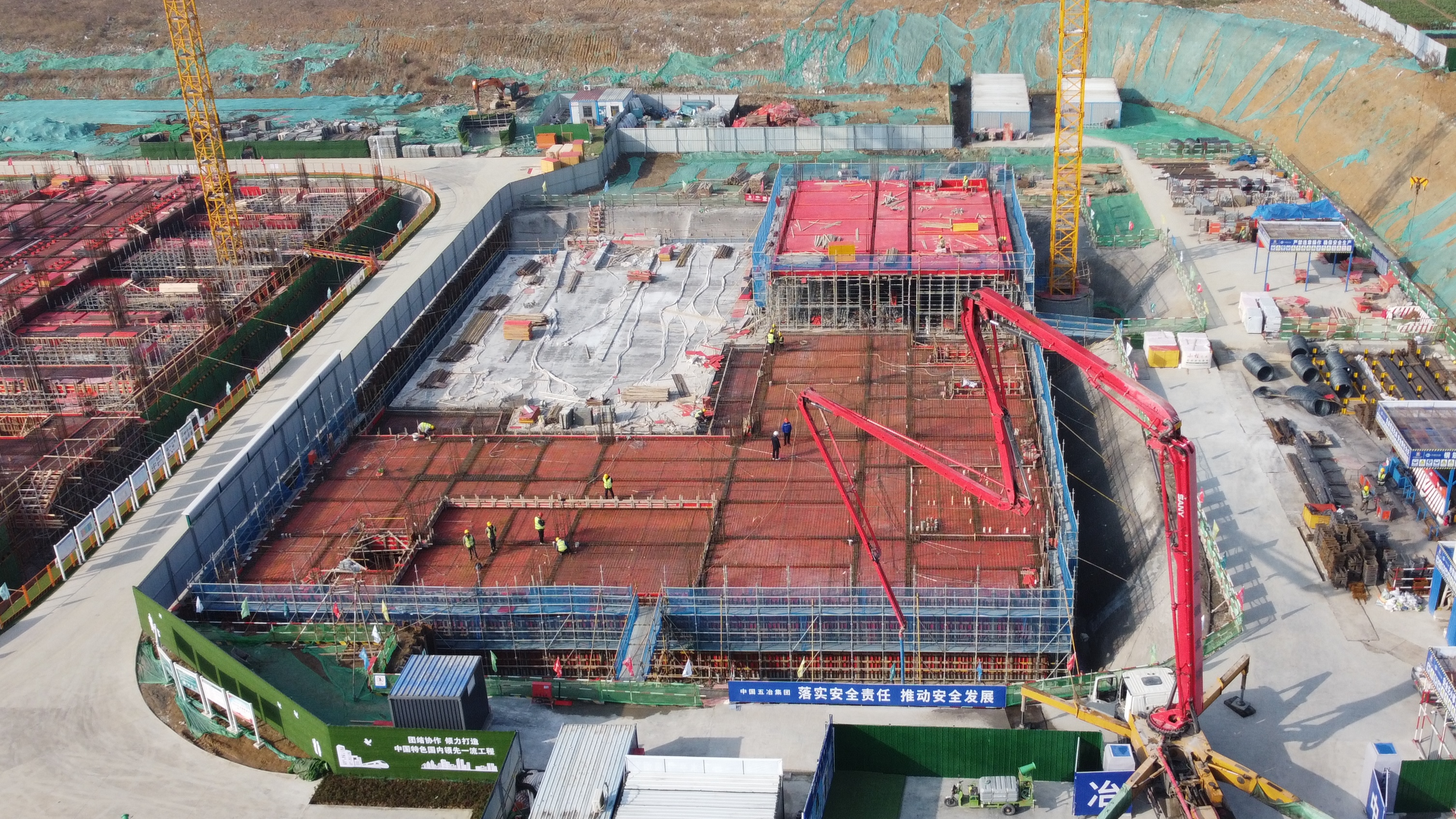 自開工建設以來,項目團隊堅持“嚴苛態度、超高標準”,抓實精細化管理,剛性執行項目策劃,合理安排各區域穿插施工,著力加強過程控製和監督,實行項目施工管理進度、安全、質量網格化管理,持續掀起施工大幹熱潮。為確保地下室結構順利封頂,五冶項目不斷優化專項施工方案,強化安全技術交底,加強安全防護措施。澆築前,項目團隊加強過程巡檢,對架體搭設、鋼筋綁紮、模板拚裝等工序嚴格把關,並組織業主、監理等進行聯合檢查,發現問題立即整改,確保一次性通過驗收;澆築過程中,管理人員全程旁站、動態跟蹤,保障澆築施工的質量安全。經過全體人員的共同努力,該項目地下室結構提前封頂,贏得業主及監理單位的一致肯定。