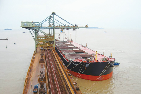 圖為中冶寶鋼保障馬跡山港春節期間的高效運轉。 (中冶寶鋼 供圖)