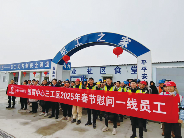 圖為春節期間,中國五冶集團雄安國貿中心項目部慰問一線員工。 (中國五冶集團 供圖)