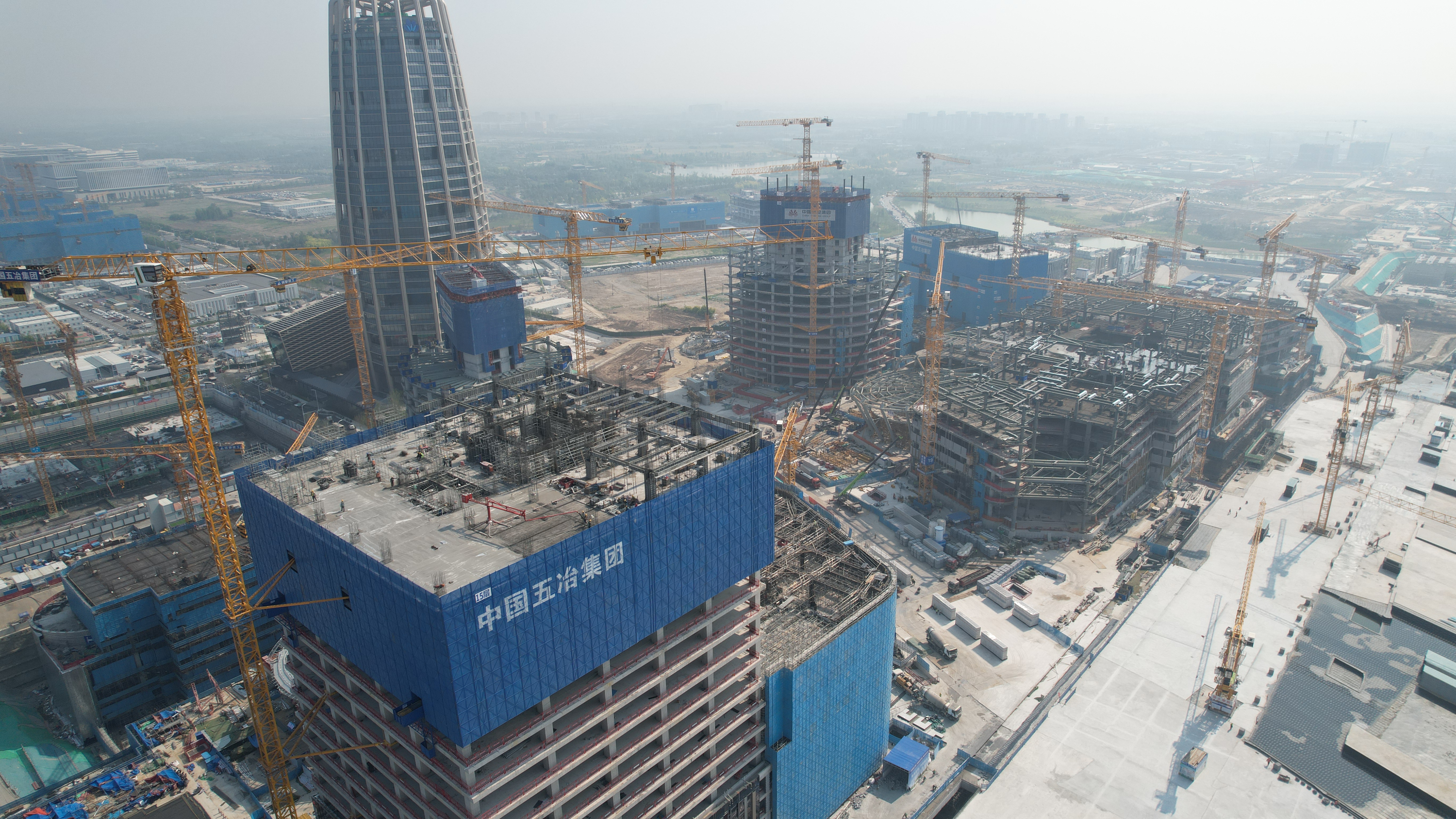 雄安國貿中心項目是雄安啟動區重點項目,總建築麵積106萬平方米,集高品質辦公、商業、酒店、公寓及航空服務於一體,致力於打造成為雄安新區都市之門、城市地標,華北公司負責該項目三工區建設。端午佳節,三工區2000多名建設者放棄休假,堅守崗位,火力全開推進主體結構、鋼結構、二次結構施工、幕牆鋪設、機電設備安裝等各項施工任務,以飽滿的熱情和十足的幹勁,向著主體結構全麵封頂的重要節點奮力衝刺。