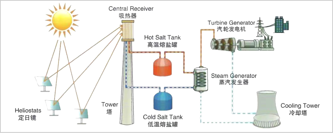 圖2:美國SolarTwo光熱電站係統原理(注:來源互聯網)