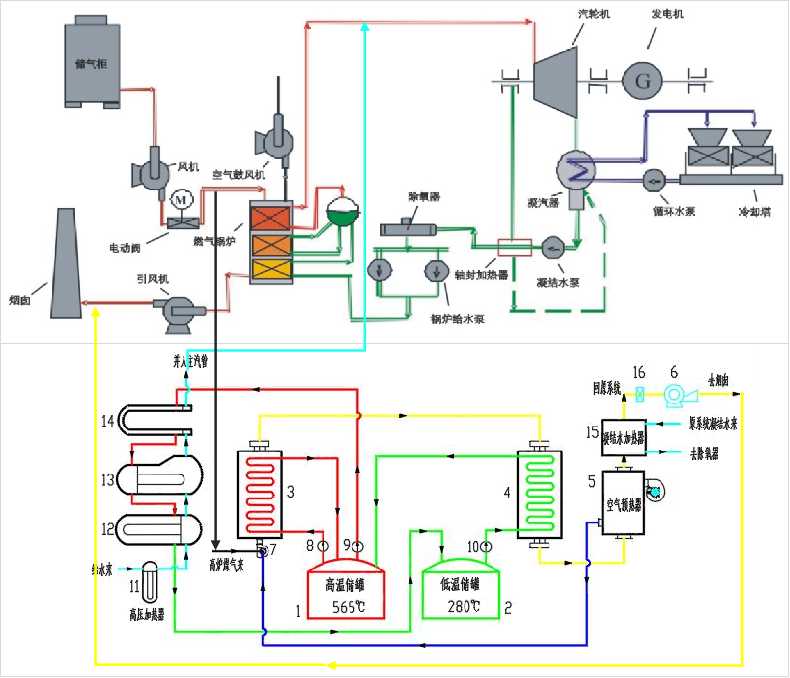 圖9:熔鹽儲熱在煤氣發電調峰中應用的技術路線