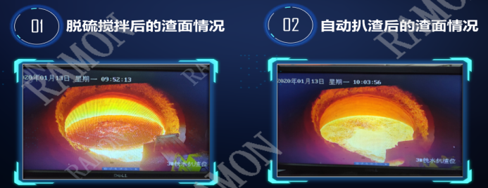 另一個采用鐳目公司智能技術降低煉鋼生產成本的典型案例,也很有說服力。寶武集團武鋼四煉鋼廠,自動扒渣係統應用後,有效降低了扒渣鐵損,每罐鐵水180噸,減少鐵損310kg,折合減少噸鋼成本為3.44元/噸。
