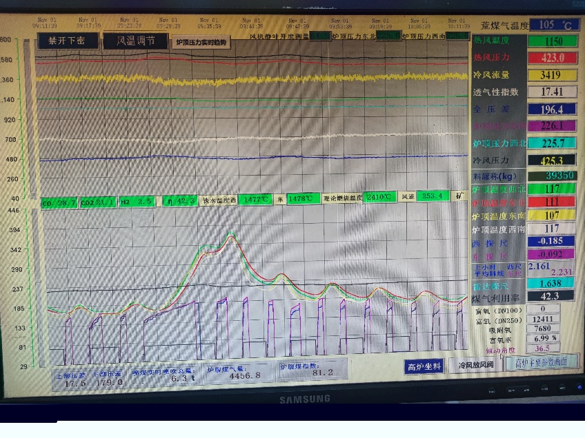 圖為2023年10月19日,鞍山寶得鋼鐵有限公司電腦操作截屏 顯示,均壓風壓波動幾乎為零的冷風壓力曲線值。