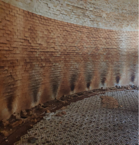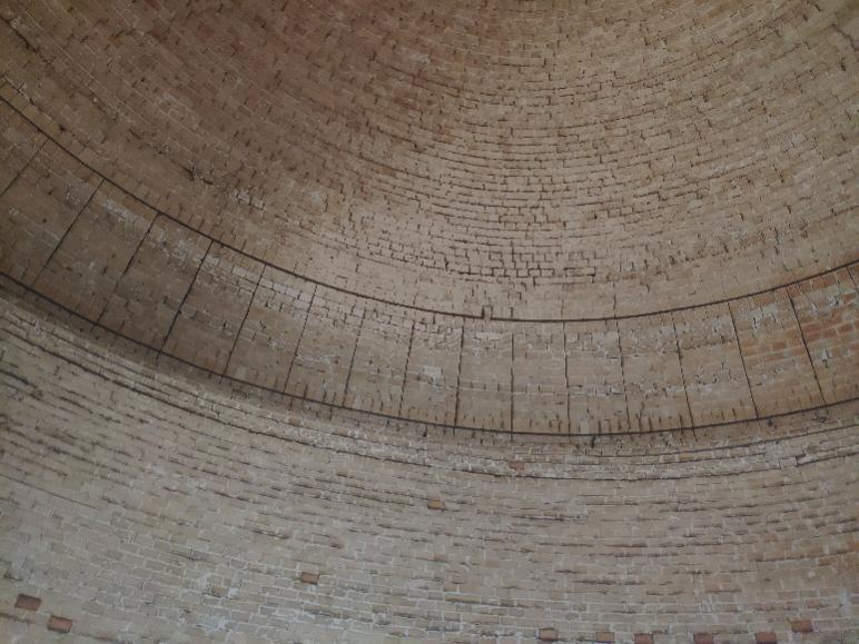 圖為豫興懸鏈線拱頂內部板塊結構、關節磚結構、內部應力消除結構的拱頂結構(直徑12米)使用兩年後停爐後內部狀態。