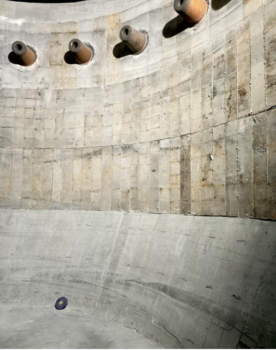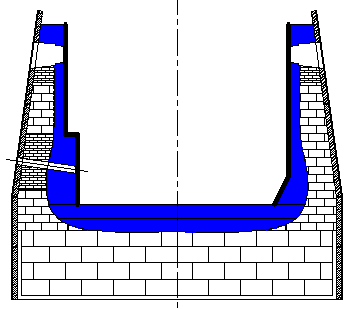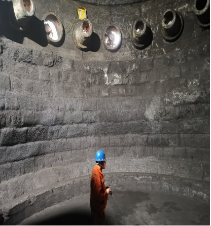 對一個中修的高爐來說,一般情況下高爐運行不超過10年,陶瓷杯雖侵蝕殆盡,但碳磚仍保存一部分。而這部分碳磚,實際已經自我形成穩定的傳熱模型,因此也會呈現側壁殘存較厚、象腳區殘存薄、爐底呈“鍋底狀”等特點。因此,爐缸澆注技術,在前期設計方案過程,將這種情況充分考慮,停爐清理過程,將這些“有效”的碳磚,盡可能完整保留,然後再整體澆注陶瓷杯,即“利舊碳磚”。圖5是爐缸澆注前環碳保護性清理效果。一般情況下,運行不超過5年的高爐,碳磚利舊率可達到70%以上;而運行10年左右的高爐,碳磚利舊率可達50%以上。