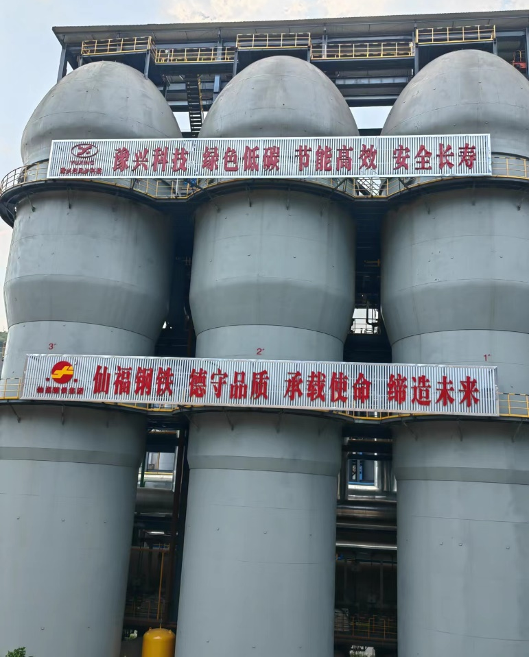 仙福鋼鐵同樣因技改升級而新建的1#高爐熱風爐合同,於2018年9月份與豫興公司簽訂,2019年10月份投入運行,運行後風溫≥1250℃。在持續使用一年後,由於豫興熱風爐的各項指標都超過設計要求,結構穩定,無高溫點,使仙福鋼鐵各部門非常滿意!因此,再建2#高爐的前夜,仙福鋼鐵決策層依然決定采用1#高爐技改的合作模式,熱風爐區域內仍由豫興公司設計,並與總承包方對接管路係統。2#高爐技改項目於2021年11月份簽訂合同,投產後風溫一直維持在1250℃左右。