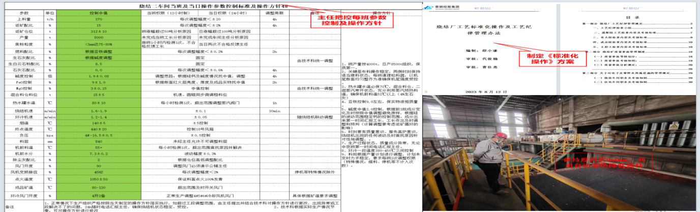 強化燒結操作穩定性:製定日參數控製及操作方針標準卡,主任進行把控,嚴格按操作方針執行操作,改善過程穩定性。