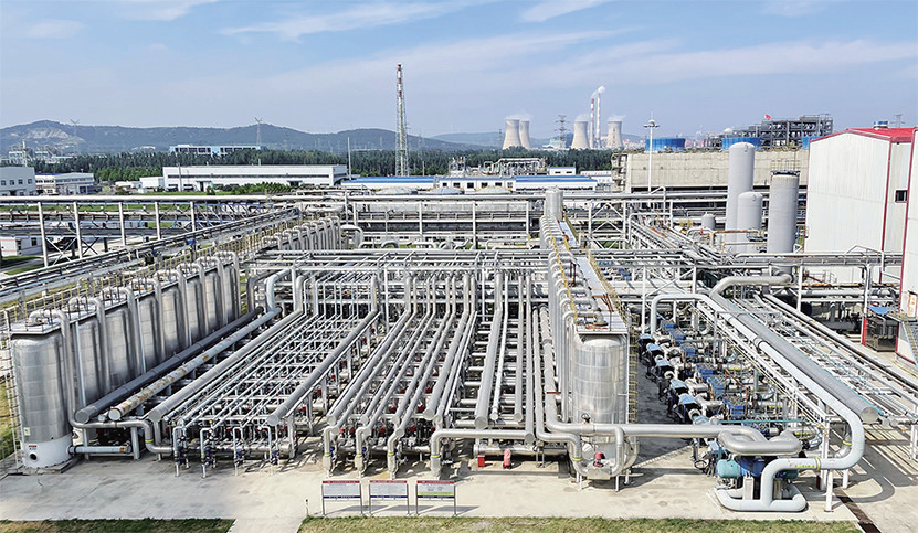 ◀圖為全球最大轉爐煤氣製甲酸鈣鋼化聯產項目現場