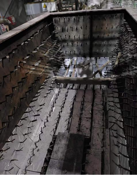 五是錨固鉤長度、分叉角度,以及對其排列方式進行調整。錨固鉤作用是用來加固永久層澆注料整體結構強度,所以,其長度要統一標準,過長、過短都影響其整體結構的穩定性。分叉角度統一120°,用來加大與永久層澆注料的接觸麵積,同時,錨固鉤統一橫向排列。