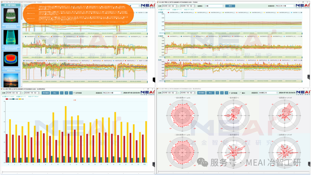 係統可實時跟蹤高爐內部各關鍵狀態的動態變化,實現如操作爐型變化、渣皮脫落、軟熔帶位置移動、爐缸侵蝕狀況、煤氣流場分布變化等關鍵指標的實時監測分析與趨勢預測,顯著提高了生產操作響應速度及安全性。
