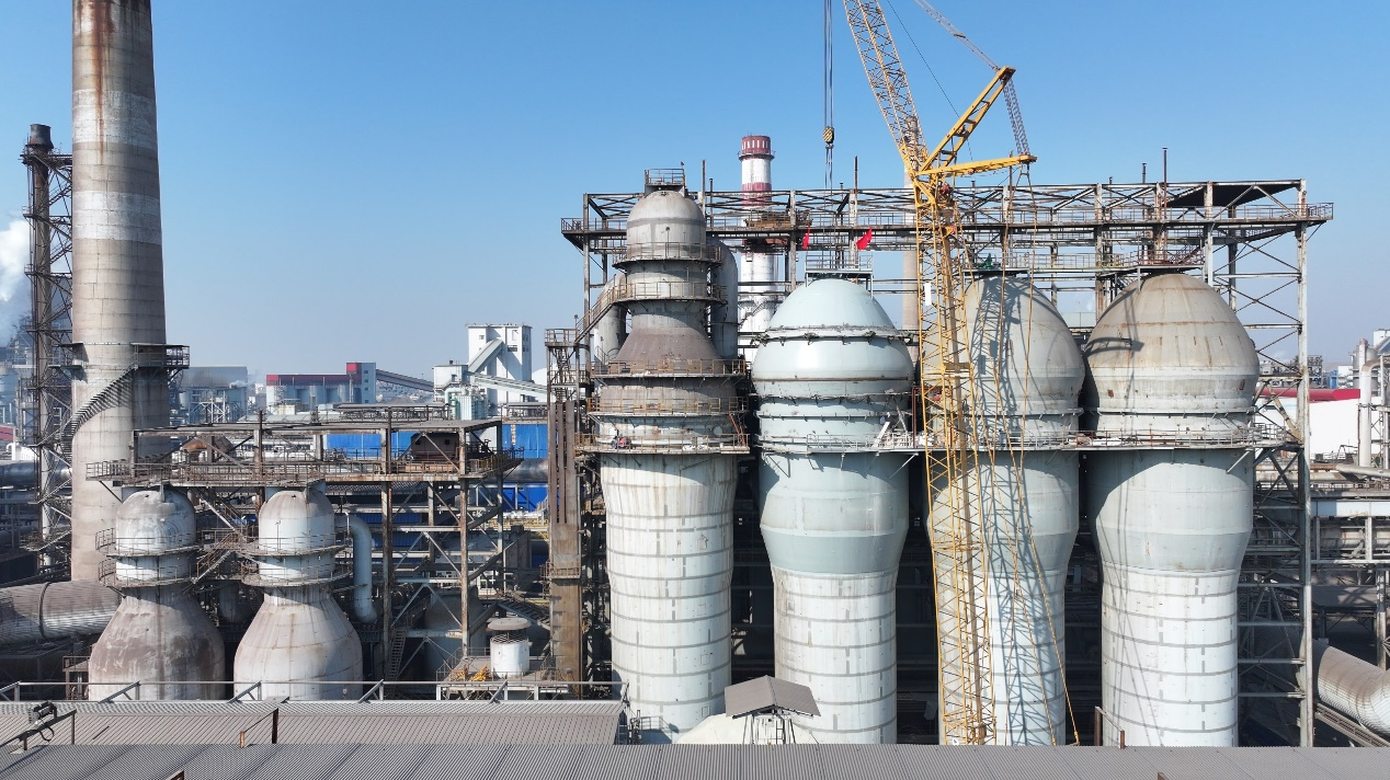 圖為滄州中鐵裝備製造材料有限公司3座2500m³高爐9座小帽子頂燃式熱風爐經切割爐殼成功改造為豫興四段式頂燃式熱風爐群