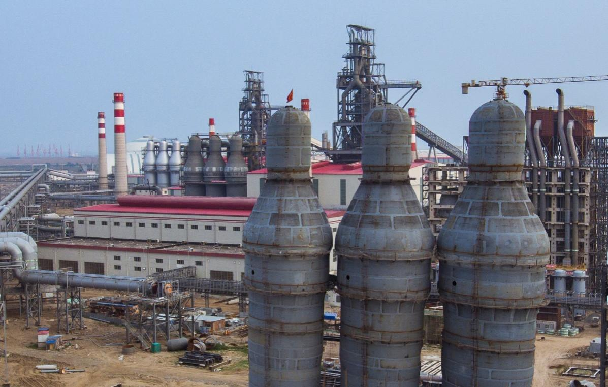 圖為河鋼集團樂亭鋼鐵公司新建4座2922m³高爐12座采用豫興四段式頂燃式熱風爐技術的熱風爐群