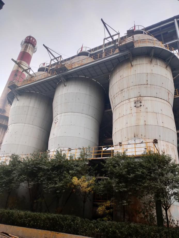 圖為河北金鼎重工1080m³高爐內燃式熱風爐爐殼利舊改造為懸鏈線頂燃式熱風爐