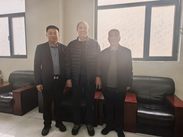 圖為2025年10月29日中國金屬學會專家委員會主任王天義(中間)、豫興公司技術專家周西辰(左)、周紅朝(右)在熱風爐操作室合影留念