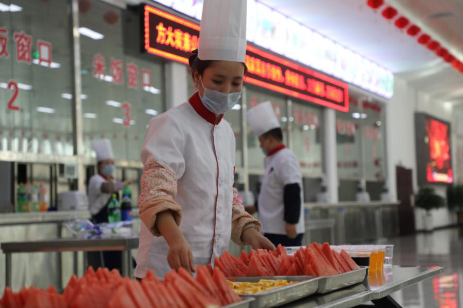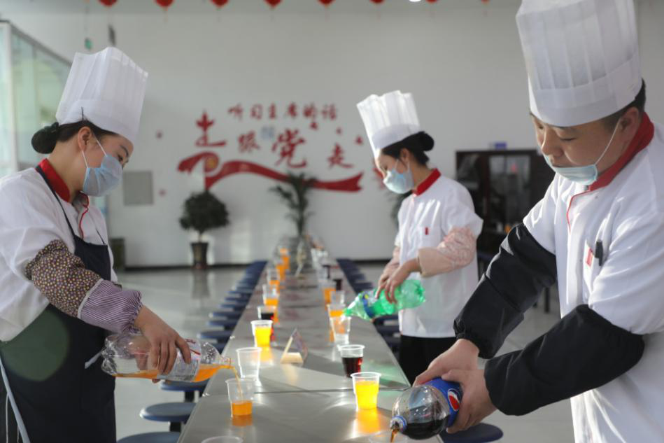 新鮮的水果、甜(tian)美(mei)的(de)飲(yin)品(pin)整(zheng)齊(qi)擺(bai)放(fang)在(zai)餐(can)桌(zhuo)上(shang),餐(can)廳(ting)內(nei)喜(xi)慶(qing)歡(huan)樂(le)的(de)歌(ge)曲(qu)悠(you)揚(yang)奔(ben)放(fang),一(yi)串(chuan)串(chuan)吉(ji)祥(xiang)的(de)紅(hong)燈(deng)籠(long)掛(gua)滿(man)了(le)大(da)廳(ting)四(si)周(zhou),電(dian)子(zi)屏(ping)上(shang)播(bo)放(fang)著(zhe)拜(bai)年(nian)的(de)喜(xi)慶(qing)畫(hua)麵(mian),“方大炭素公司恭祝全體員工及家屬新春快樂”的祝福語在電子屏上滾動播放著。整個員工餐飲中心充滿著濃濃的年味兒和喜慶的氛圍。餐盤裏黃燜羊肉、油炸黃茹魚、炸雞腿、水餃等都在等待著除夕夜用餐的員工。
