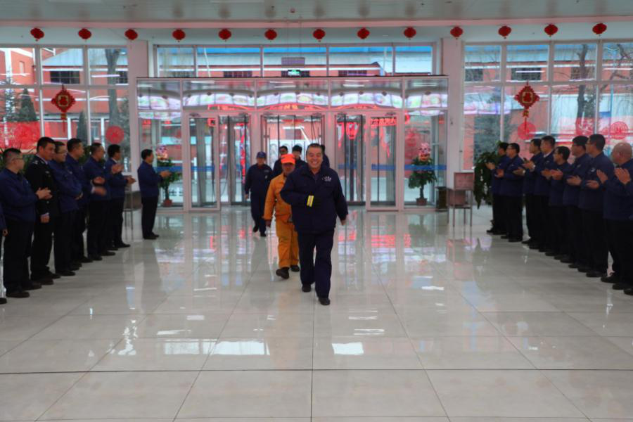 公司領導帶領幹部們熱情歡迎前來就餐的員工