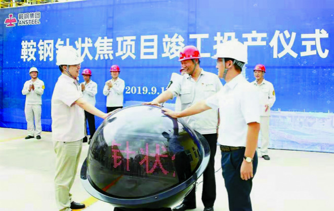 圖為中鋼熱能院總包的鞍鋼股份4萬噸/年煤係針狀焦項目竣工投產儀式現場